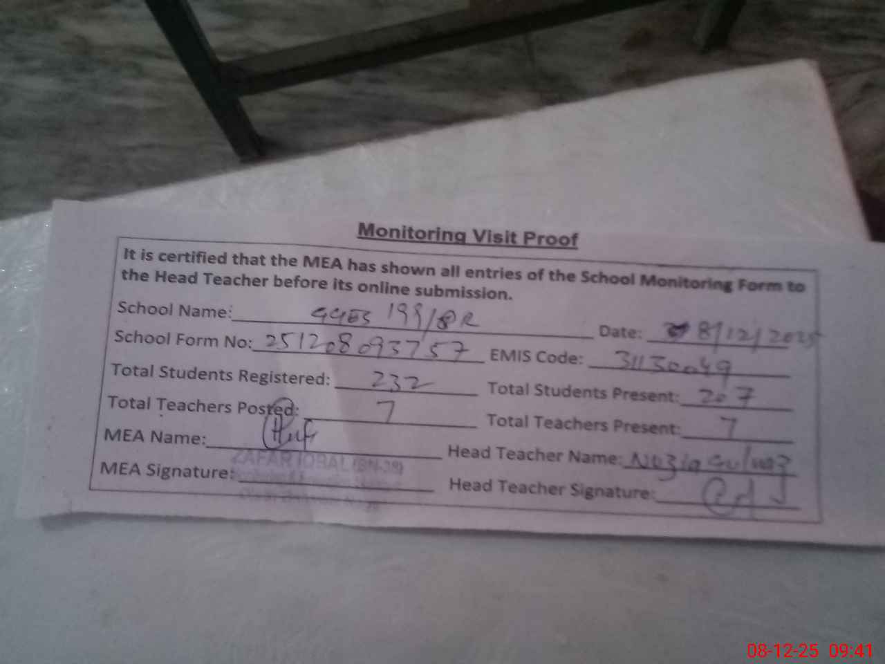 | EMIS Code: 31130049 | Name of School: GGES CHAK NO. 199/8-R | |||