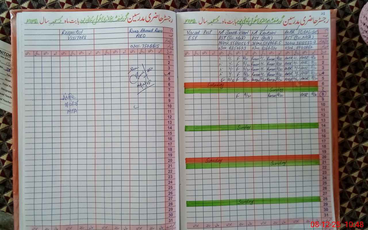 | Name: AM**** IQ**** Designation: (School Headmaster's/Headmistress's) PST Phone/Cell Number: 03**** |