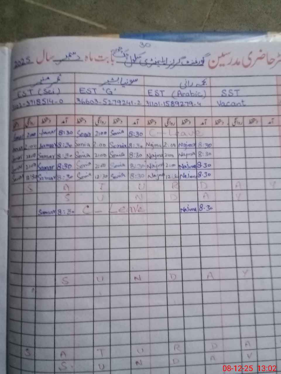 | CNIC | Full Name | Designation | R/C | Absence During Last Calender Month |