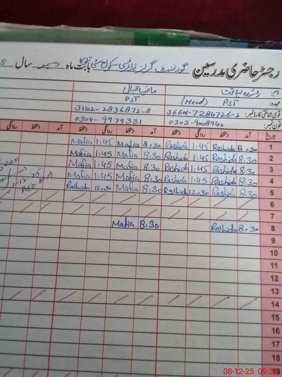 | District: BAHAWALNAGAR | Tehsil: CHISHTIAN | Markaz: FEMALE-19 | Level: Primary | |