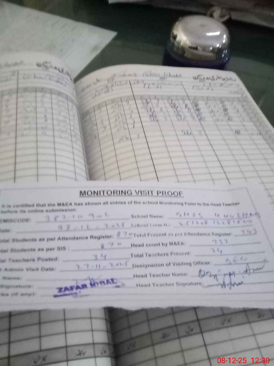 | Remarks (Use Separate Page if Required): last visit DEO 27 November 25 Total on sis 870 Total on register 870 | |||||