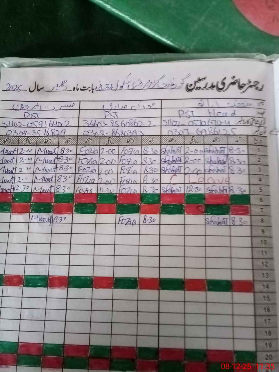 | Name: SH**** BA**** Designation: (School Headmaster's/Headmistress's) PST Phone/Cell Number: 03**** |