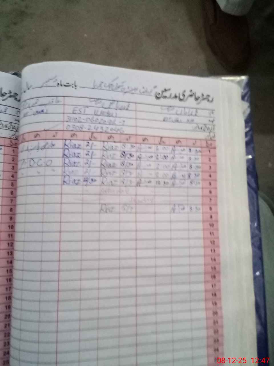 | Name: Mu**** Am**** Designation: (School Headmaster's/Headmistress's) EST Phone/Cell Number: 03**** |
