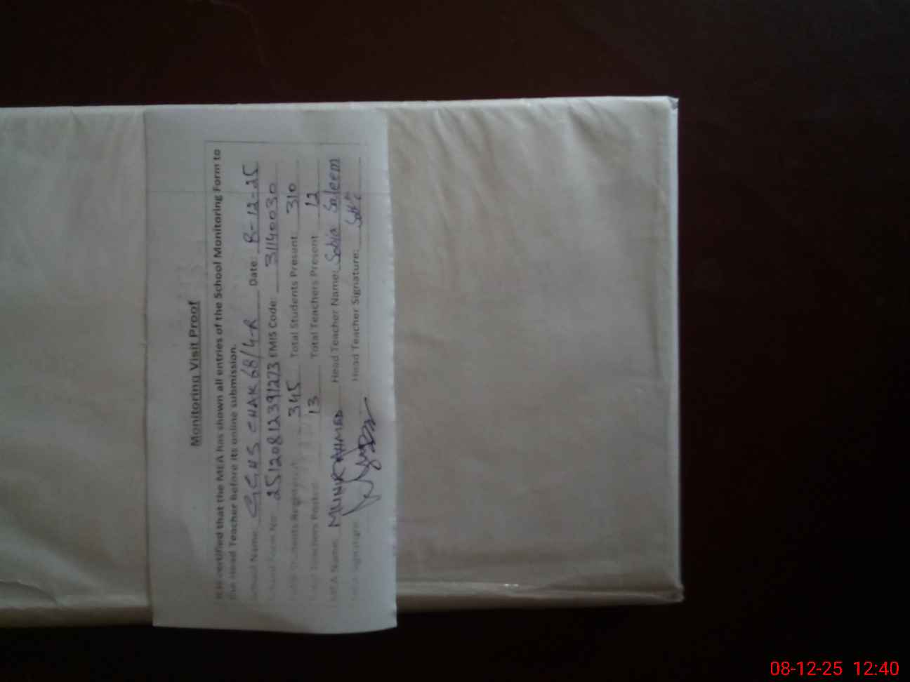 | Attendance Register | Head Teacher | MEA with School | Visit Proof |