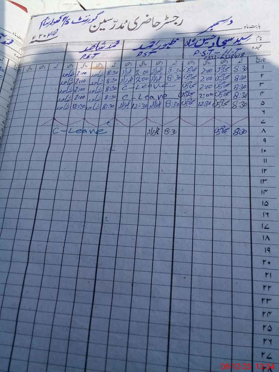 | Name: Sy**** Sa**** Hu**** Sh**** Designation: (School Headmaster's/Headmistress's) PST Phone/Cell Number: 03**** |
