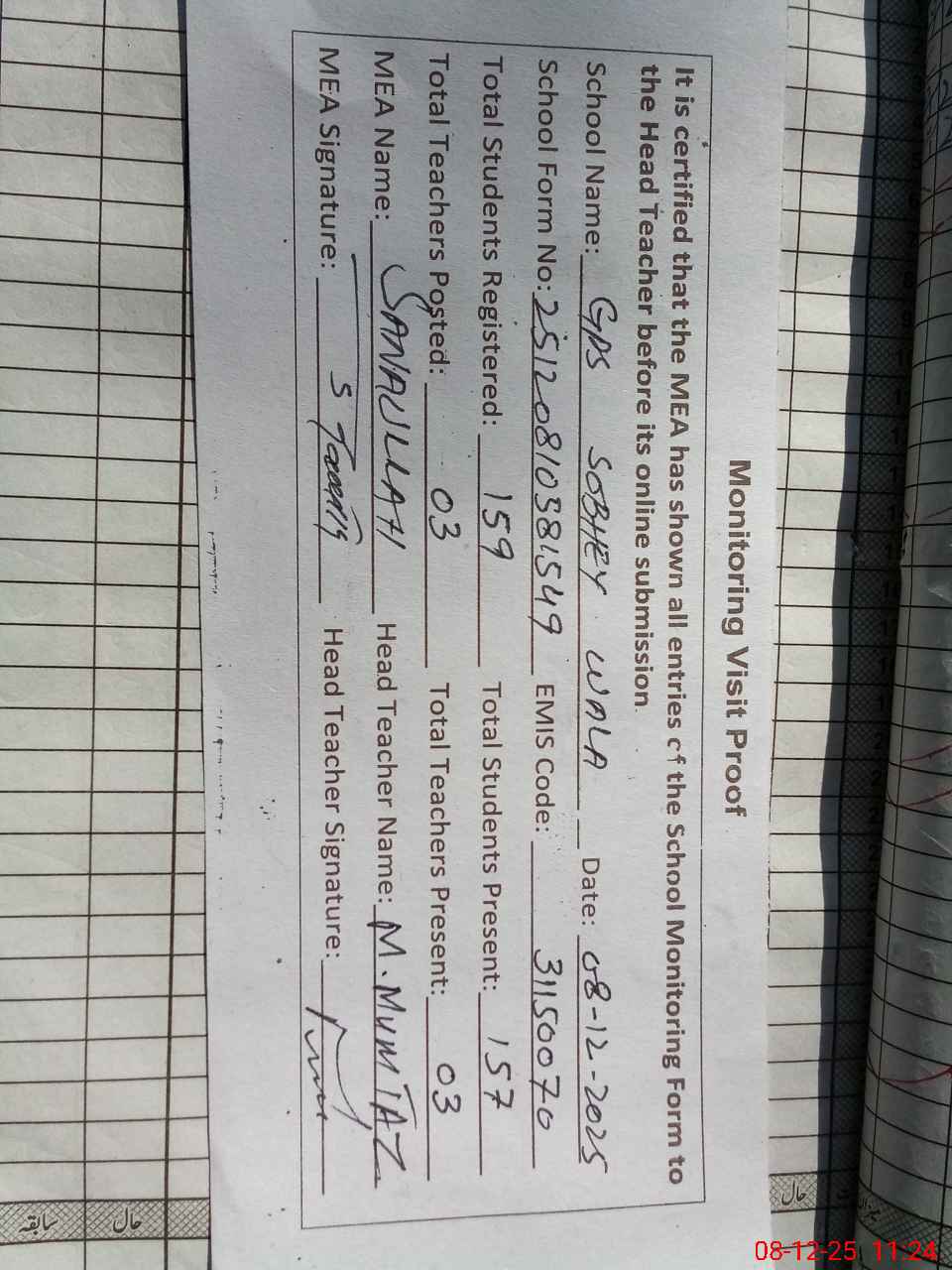 | EMIS Code: 31150070 | Name of School: GPS SOBHEY WALA | |||