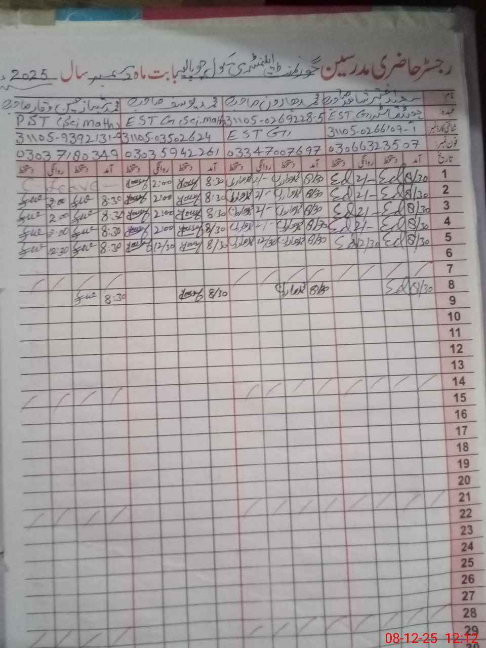 | Name: Sa**** Ak**** Designation: (School Headmaster's/Headmistress's) EST Gen Phone/Cell Number: 03**** |