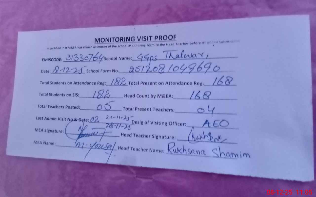 | EMIS Code: 31330764 | Name of School: GGPS THALWARI | |||