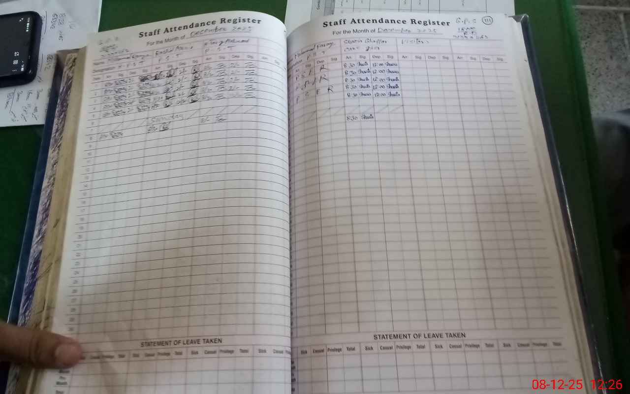 | CNIC | Full Name | Designation | R/C | Absence During Last Calender Month |