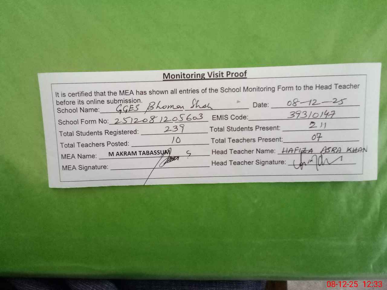 | EMIS Code: 39310147 | Name of School: GGES BHOMAN SHAH | |||