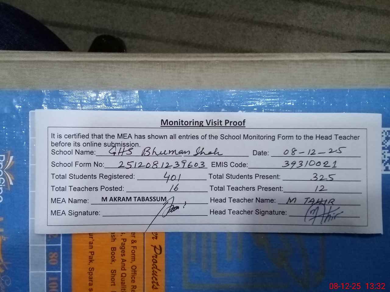 | EMIS Code: 39310021 | Name of School: GHS BHUMAN SHAH | |||