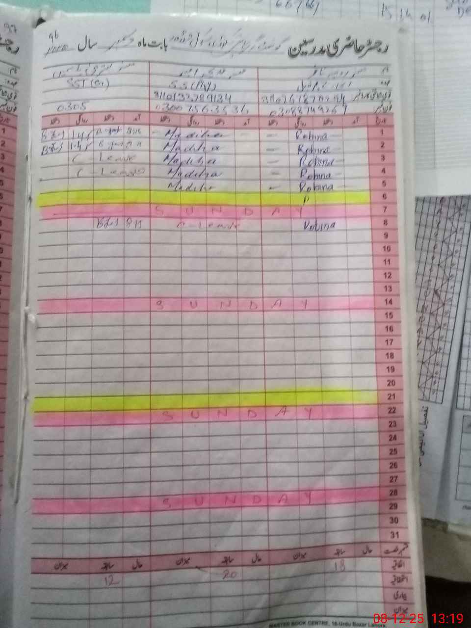 | CNIC | Full Name | Designation | R/C | Absence During Last Calender Month |