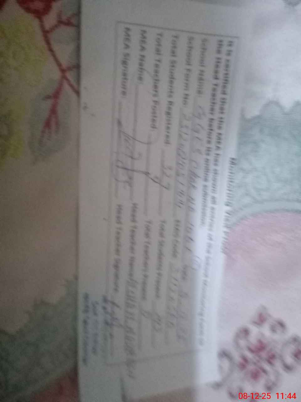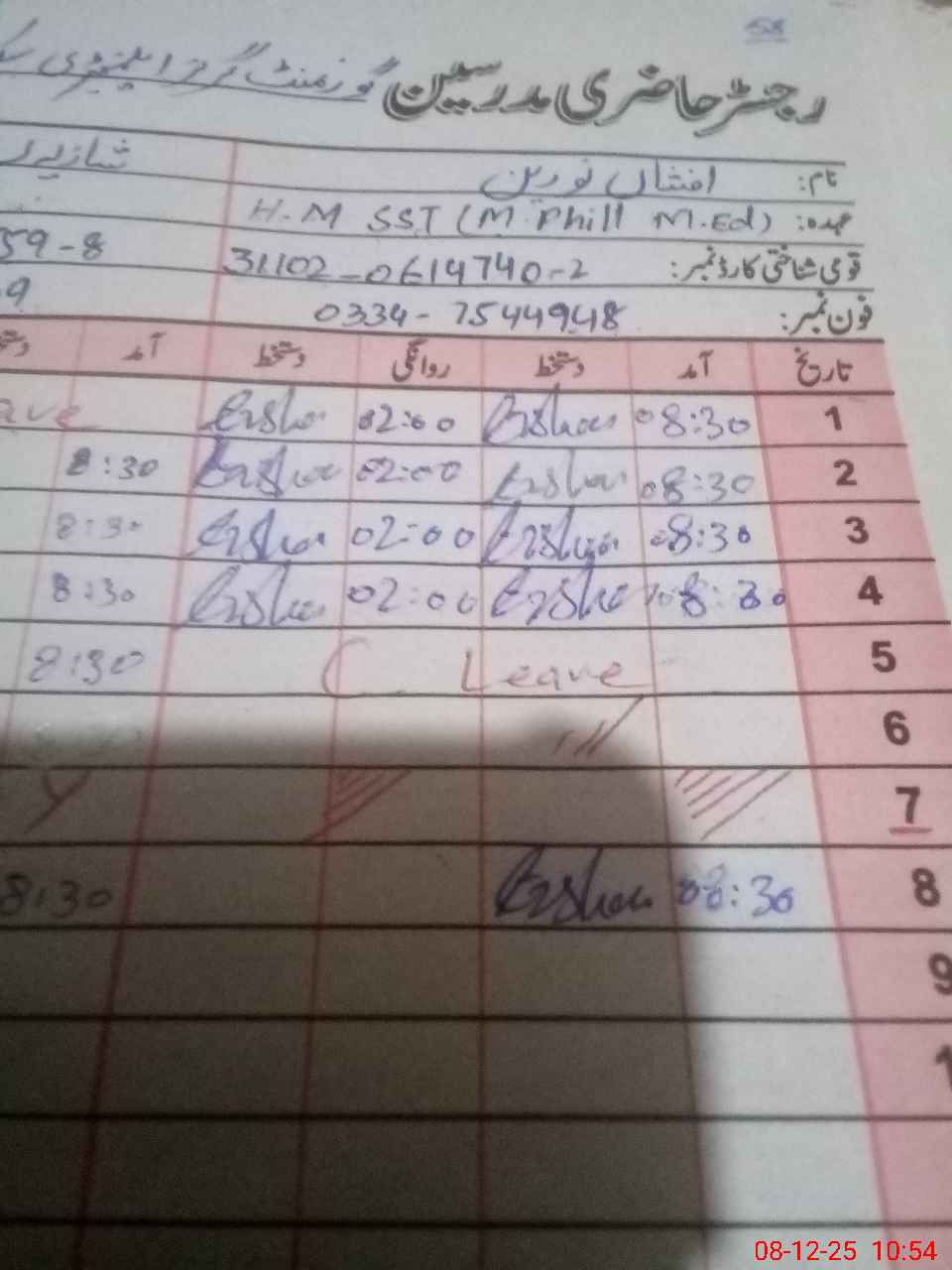 | Name: AF**** NO**** Designation: (School Headmaster's/Headmistress's) SST Phone/Cell Number: 03**** |