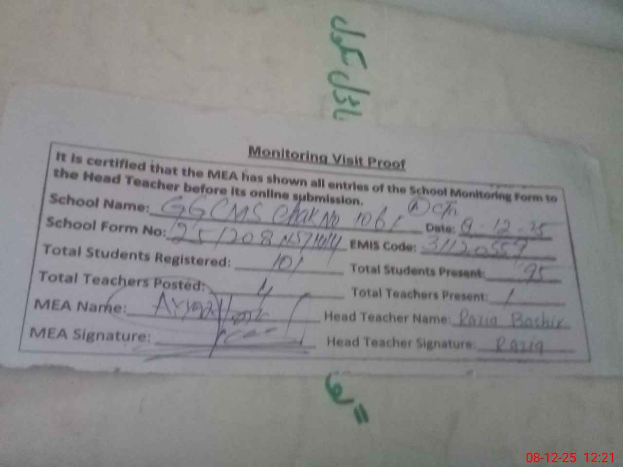 | EMIS Code: 31120559 | Name of School: GGCMS 106/FA | |||