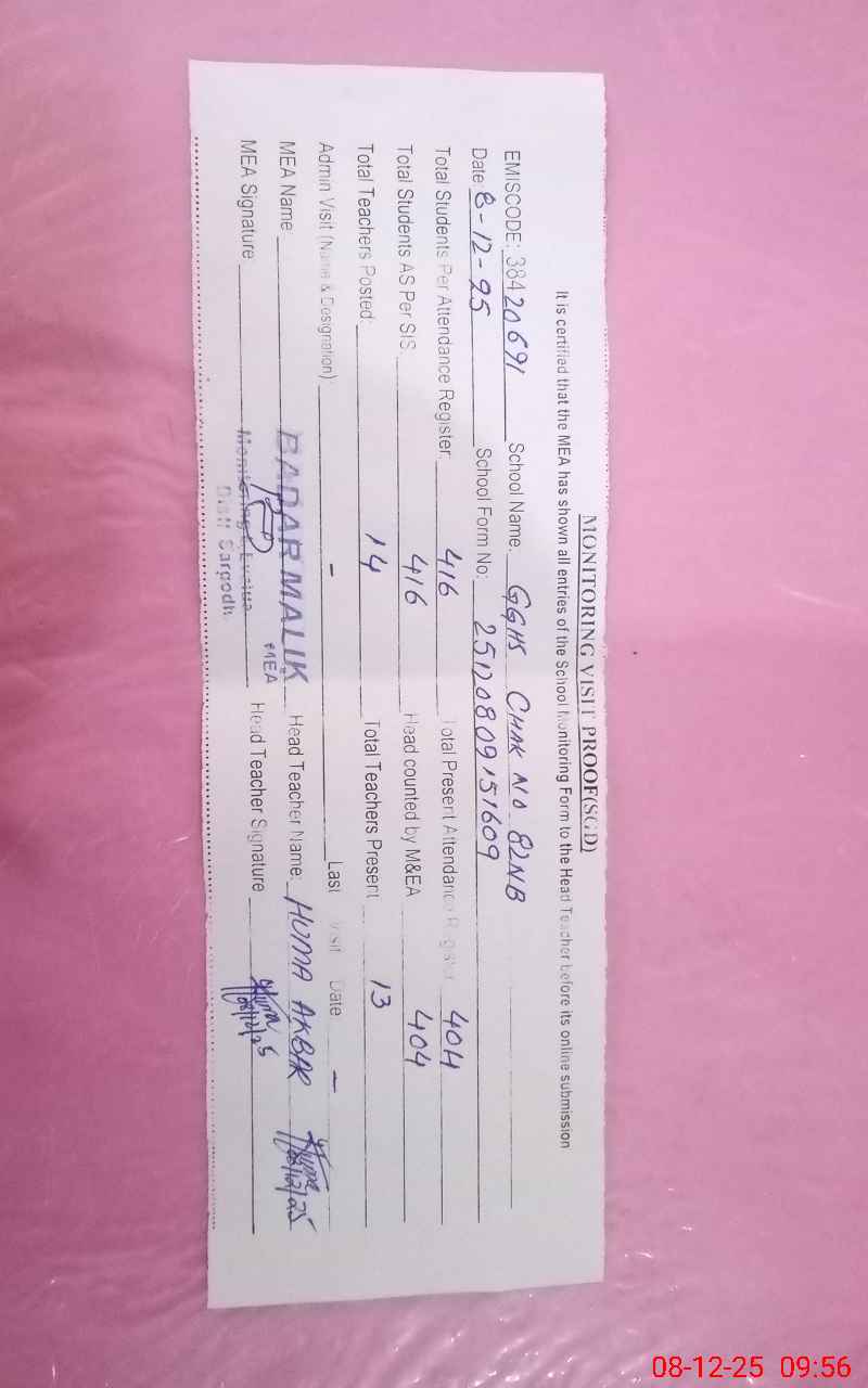| EMIS Code: 38420691 | Name of School: GGHS CHAK NO.82 NB | |||