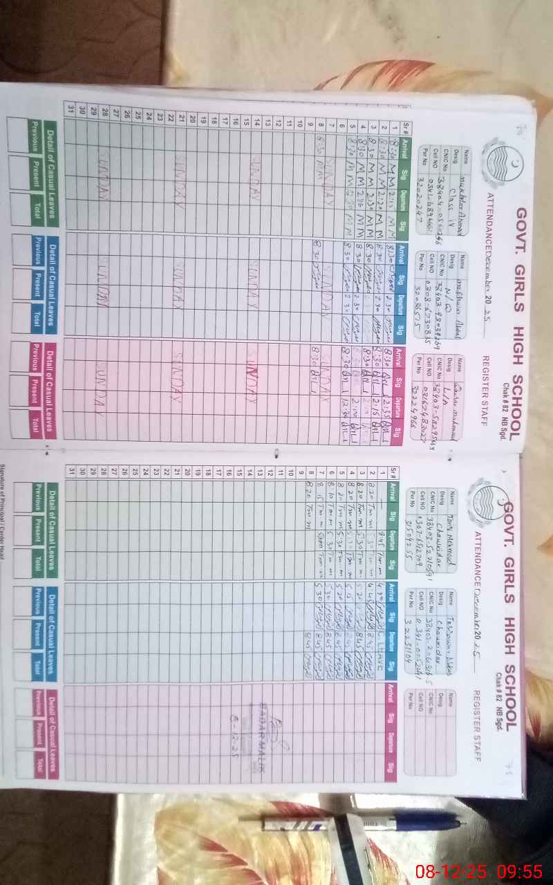 | CNIC | Full Name | Designation | R/C | Absence During Last Calender Month |