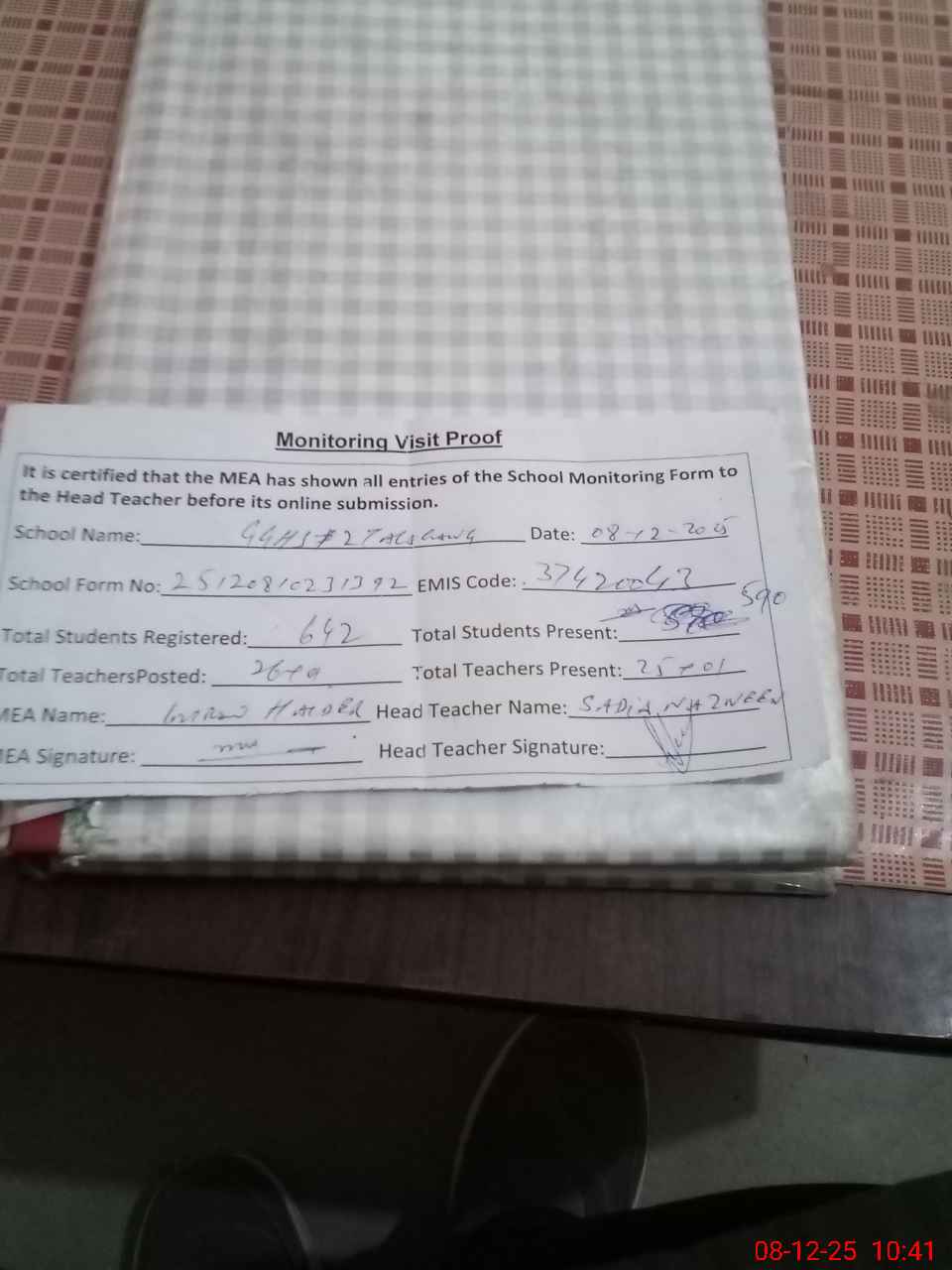 | Certified that this School was Inspected by the Undersigned MEA/DMO Today and the Information Stated Above is as Per Record. | |||||