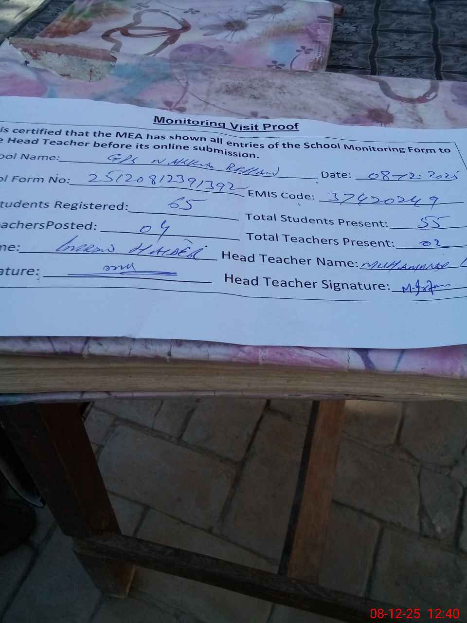 | EMIS Code: 37420249 | Name of School: GPS NAKKA REHAN | |||
