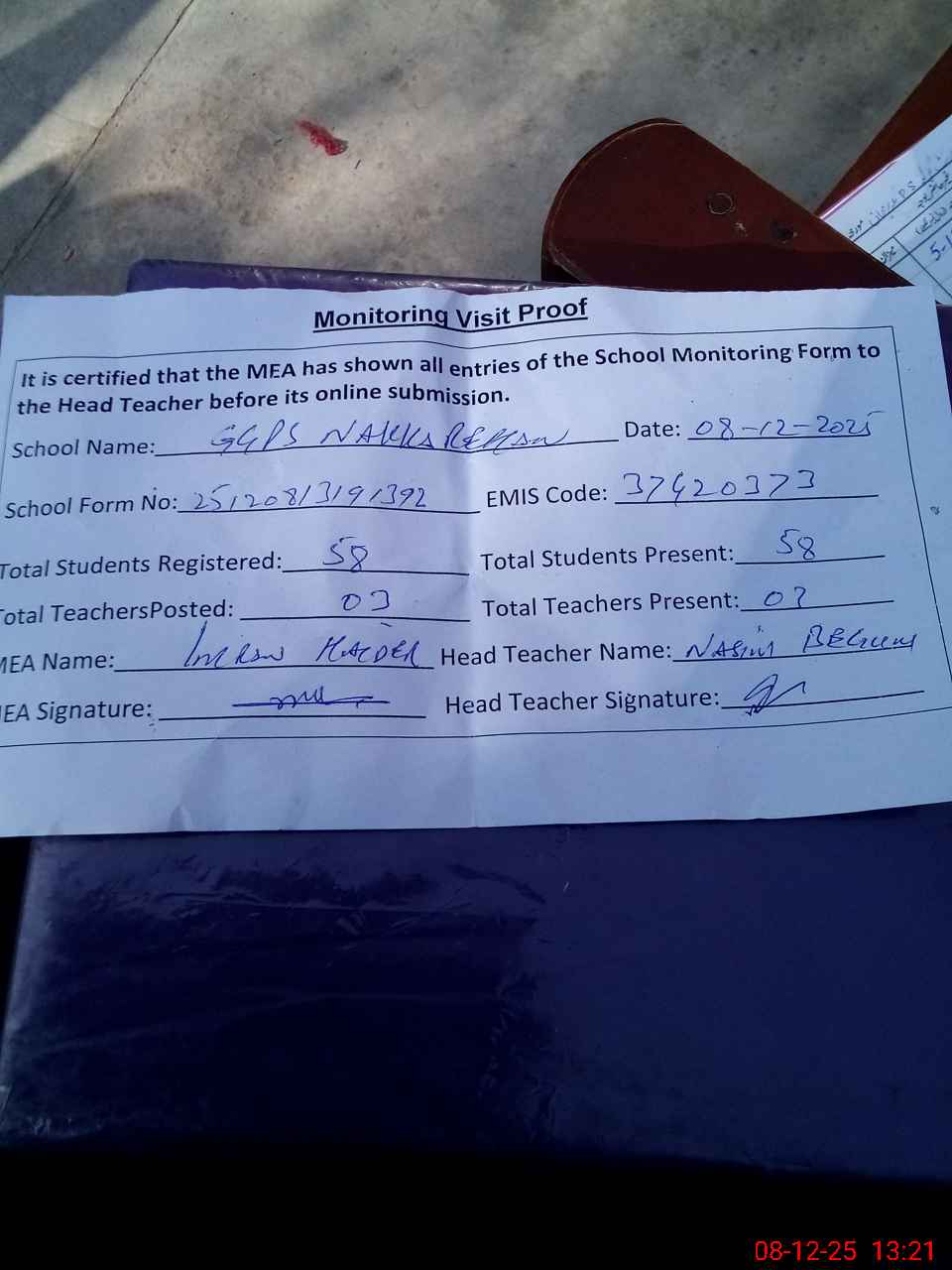 | EMIS Code: 37420373 | Name of School: GGPS NAKA REHAN | |||