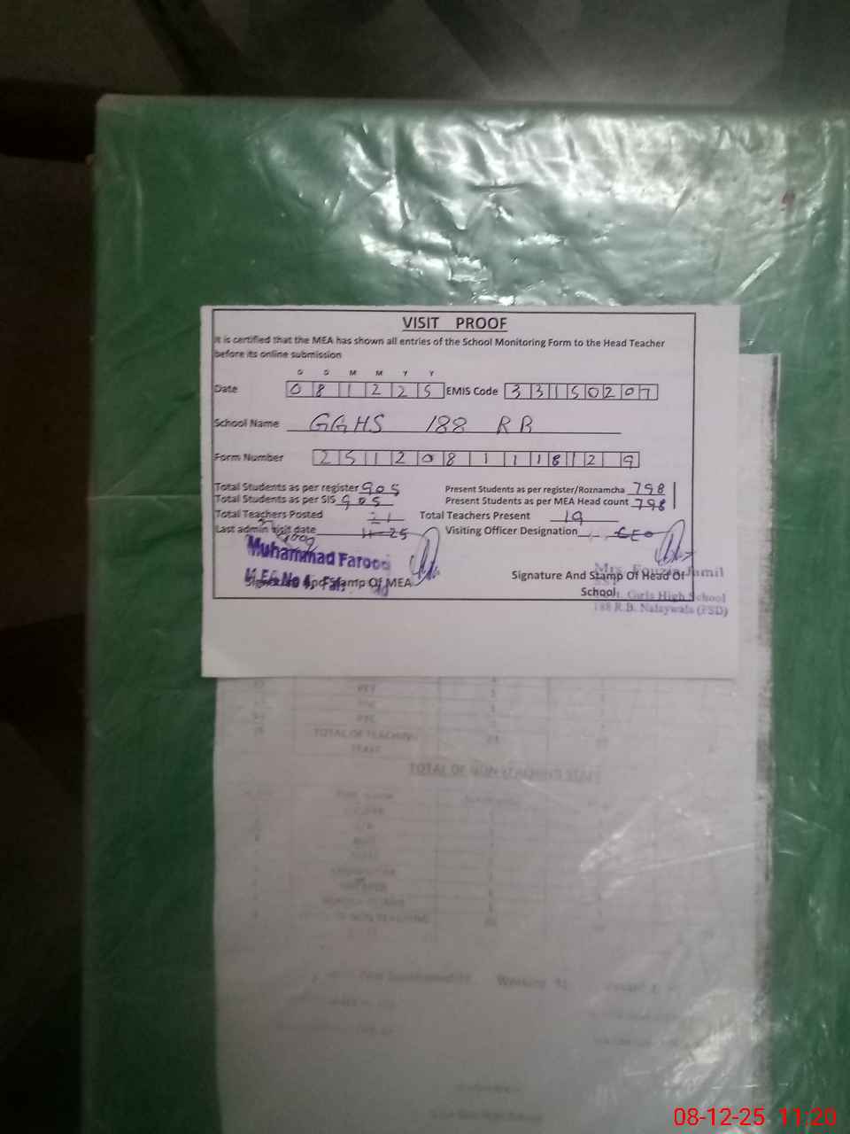 | Attendance Register | Head Teacher | MEA with School | Visit Proof |