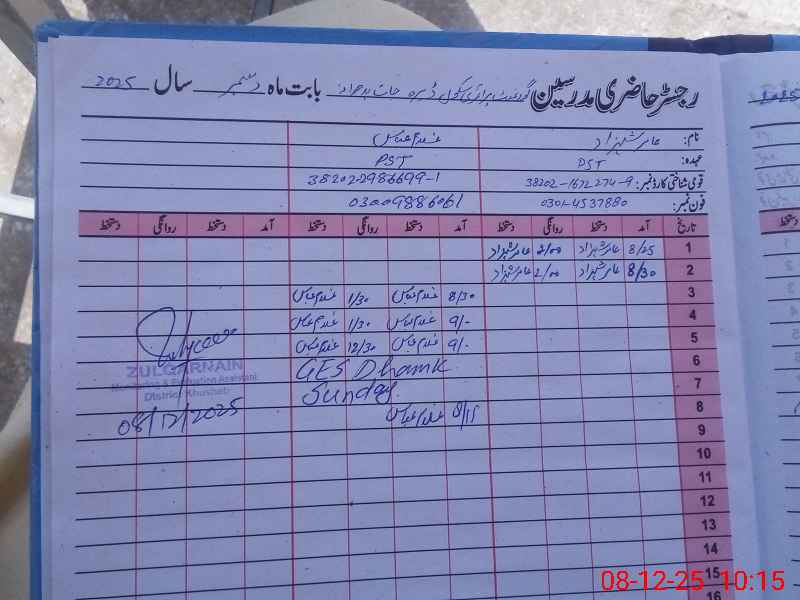 | Name: Gh**** Ab**** Designation: (School Headmaster's/Headmistress's) PST Phone/Cell Number: |