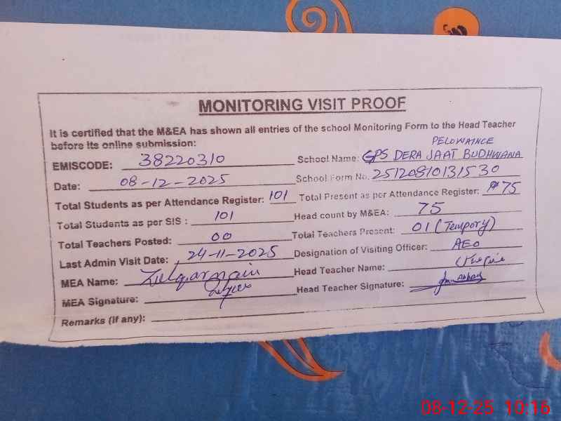 | EMIS Code: 38220310 | Name of School: GPS DERA JAAT BUDHWANA PEELOWAINSE | |||