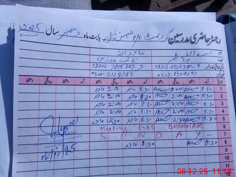 | Name: As**** Ul**** Designation: (School Headmaster's/Headmistress's) PST Phone/Cell Number: 03**** |