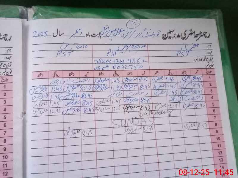 | Name: Su**** Designation: (School Headmaster's/Headmistress's) PST Phone/Cell Number: 03**** |