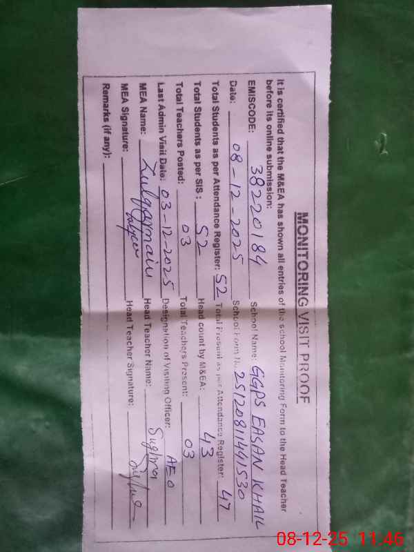 | EMIS Code: 38220184 | Name of School: GGPS EASAN KHAIL | |||
