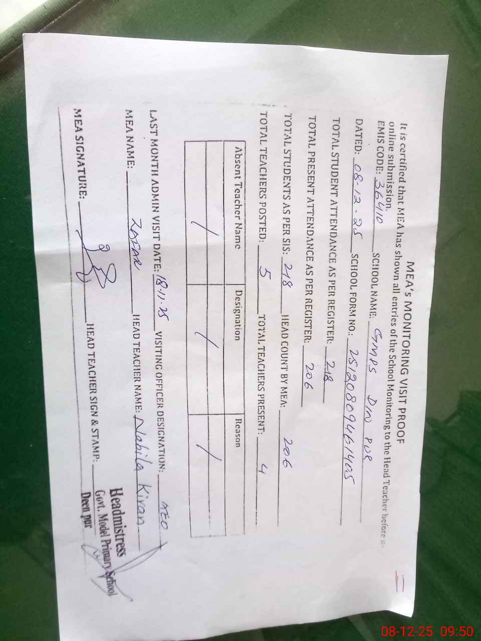 | EMIS Code: 36410448 | Name of School: GMPS DIN PUR, ABDUL HAKIM | |||