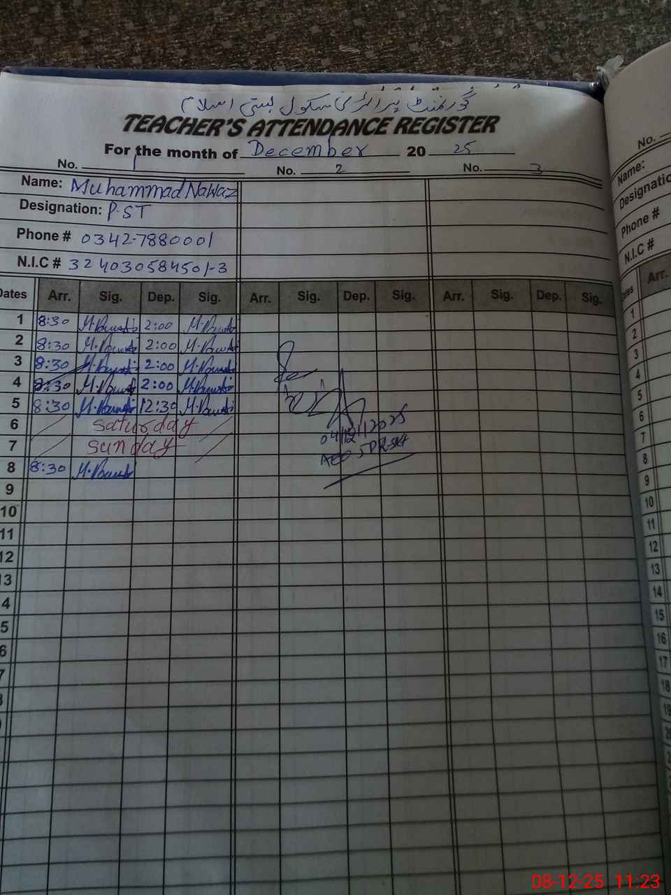 | Name: Wa**** Ab**** Designation: (School Headmaster's/Headmistress's) PST Phone/Cell Number: 03**** |