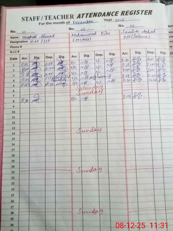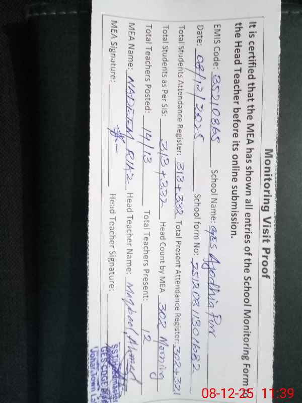 | Attendance Register | Head Teacher | MEA with School | Visit Proof |