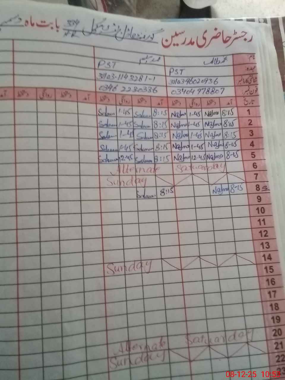 | Name: Na**** Ta**** Designation: (School Headmaster's/Headmistress's) PST Phone/Cell Number: 03**** |