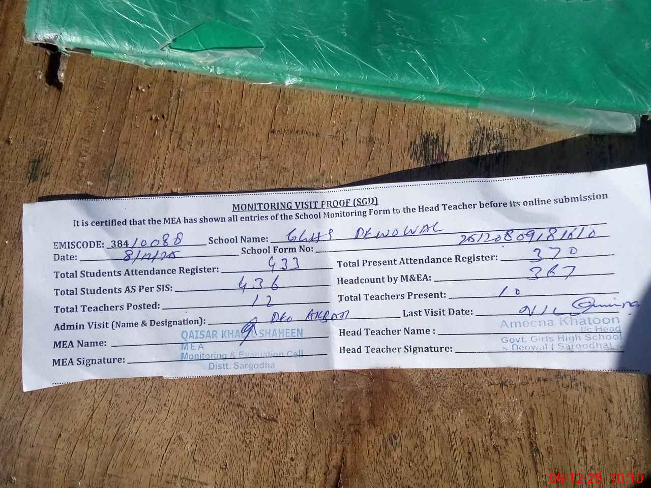 | EMIS Code: 38410088 | Name of School: GGHS DEOWAL | |||
