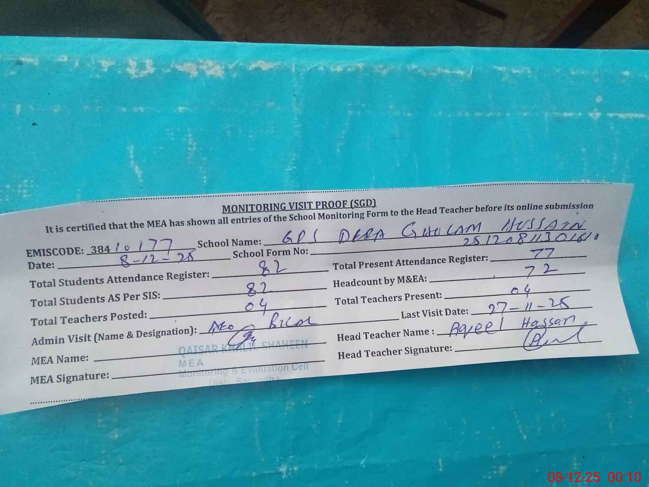 | EMIS Code: 38410177 | Name of School: GPS DERA GHULAM HUSSAIN | |||