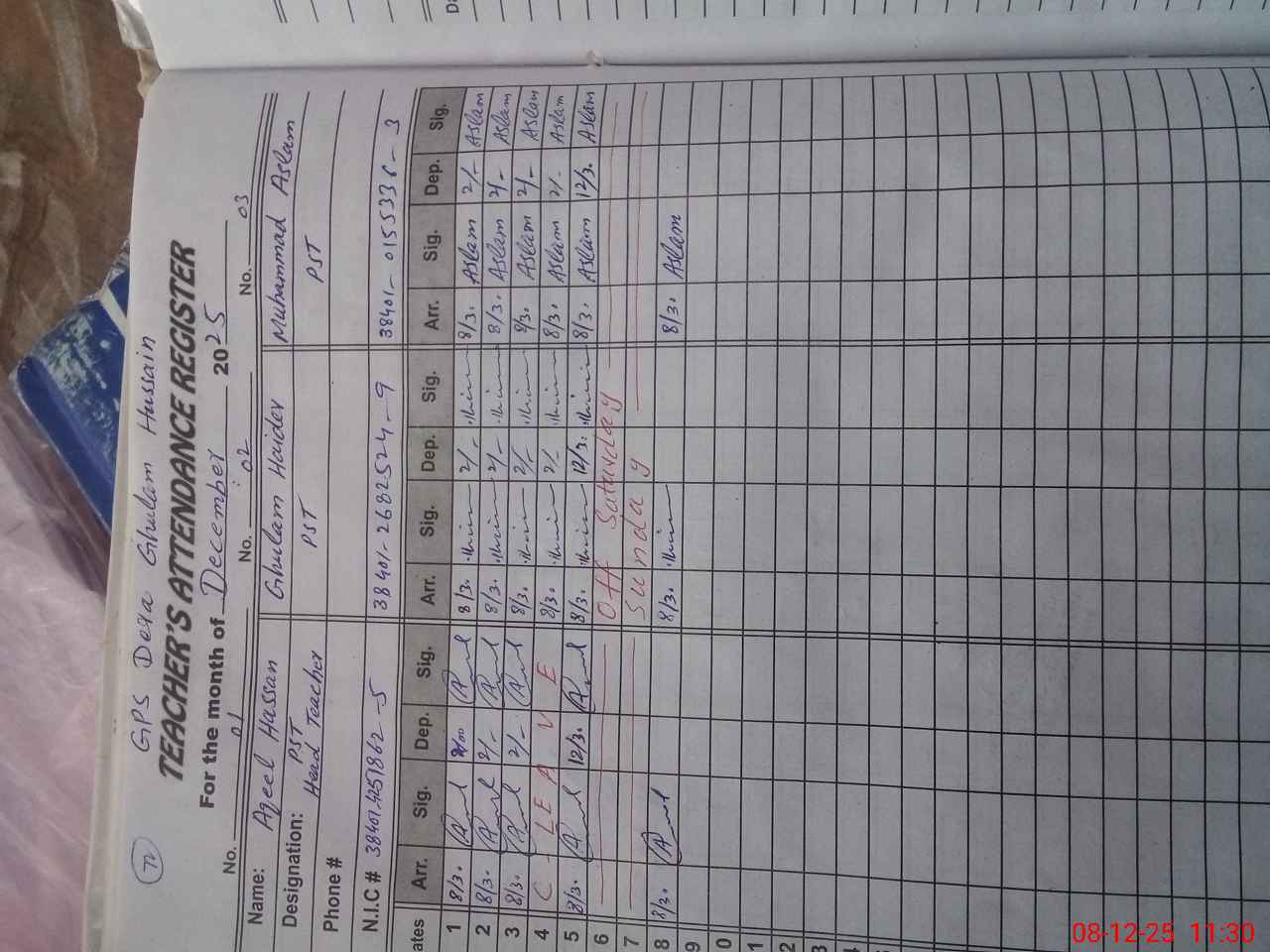 | Name: Aq**** Ha**** Designation: (School Headmaster's/Headmistress's) PST Phone/Cell Number: 03**** |