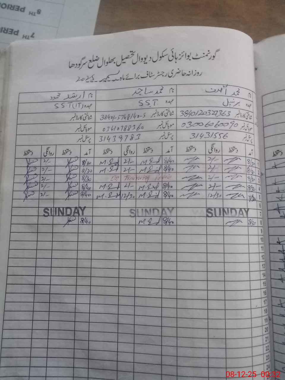 | CNIC | Full Name | Designation | R/C | Absence During Last Calender Month |