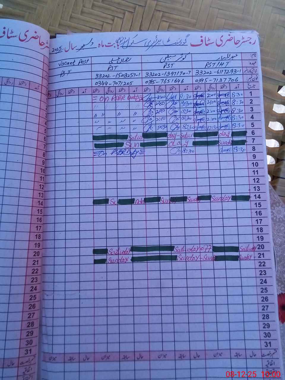| Name: Ka**** Sa**** Designation: (School Headmaster's/Headmistress's) PST Phone/Cell Number: 03**** |