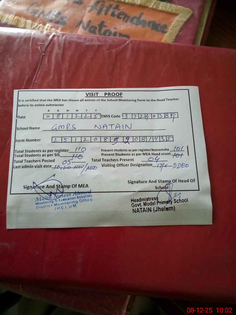 | EMIS Code: 37240389 | Name of School: GMPS NATAIN | |||