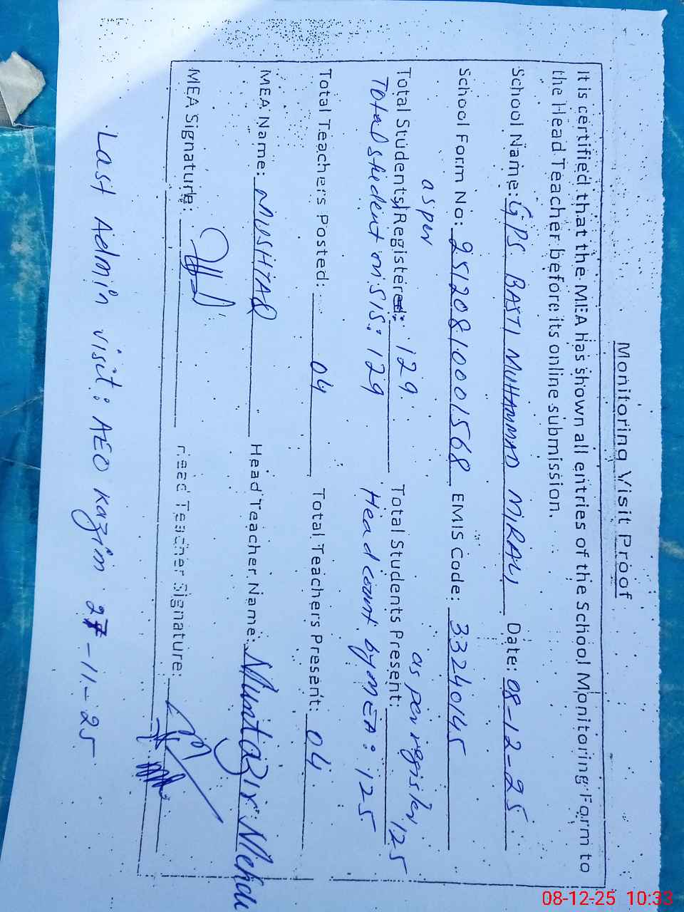 | EMIS Code: 33240145 | Name of School: GPS BASTI MUHAMMAD MIRALI | |||