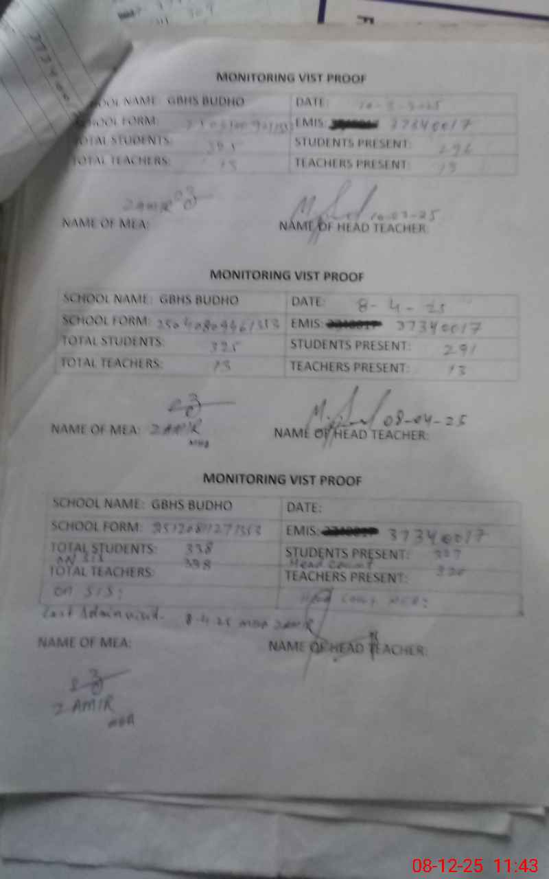 | EMIS Code: 37340017 | Name of School: GHS BUDHU | |||