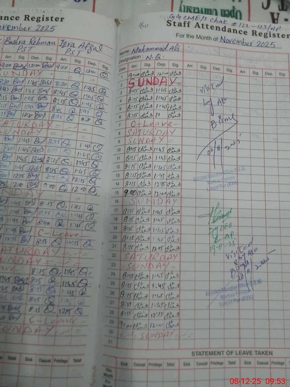 | CNIC | Full Name | Designation | R/C | Absence During Last Calender Month |