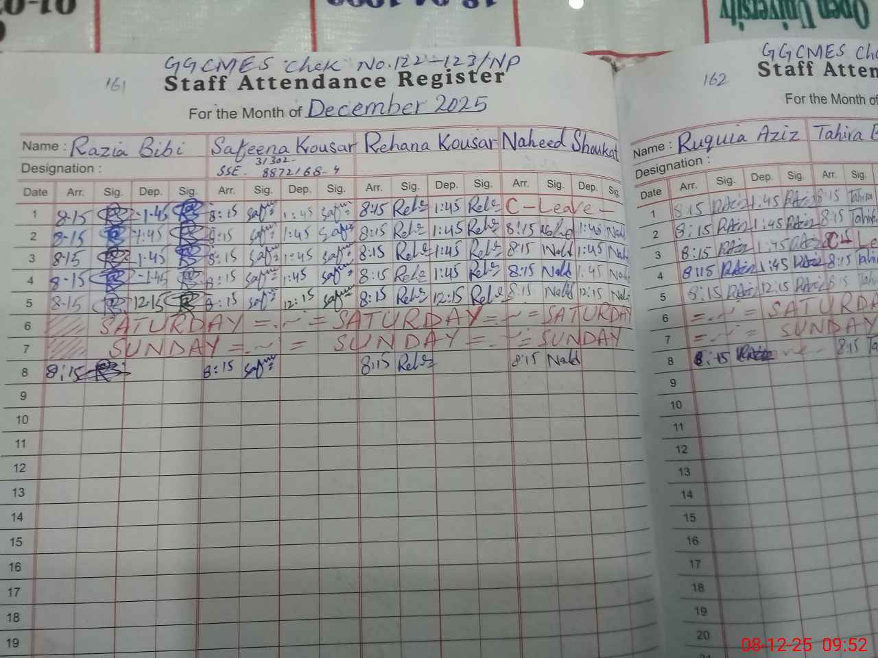 | Monitoring Date: 08-12-2025 | Start Time: 08-12-2025 09:01 AM | End Time: 08-12-2025 09:55 AM | Name of MEA: Mu**** Ar**** (K**** | |
