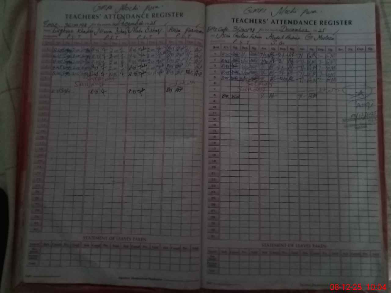 | Remarks (Use Separate Page if Required): SG ABDUL RASHEED PRESENCE MARKED BUT NOT PRESENT IN SCHOOL | |||||