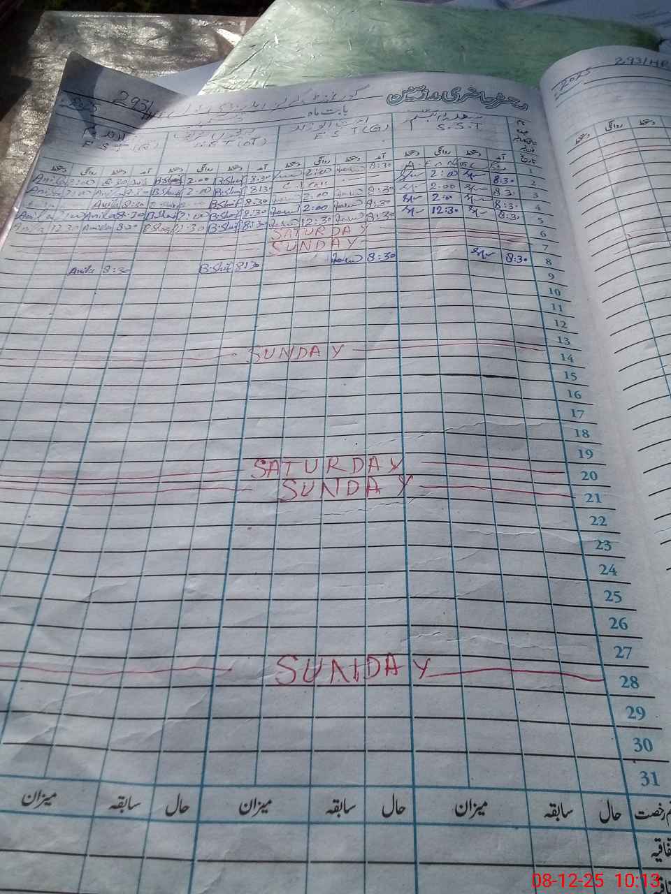 | CNIC | Full Name | Designation | R/C | Absence During Last Calender Month |