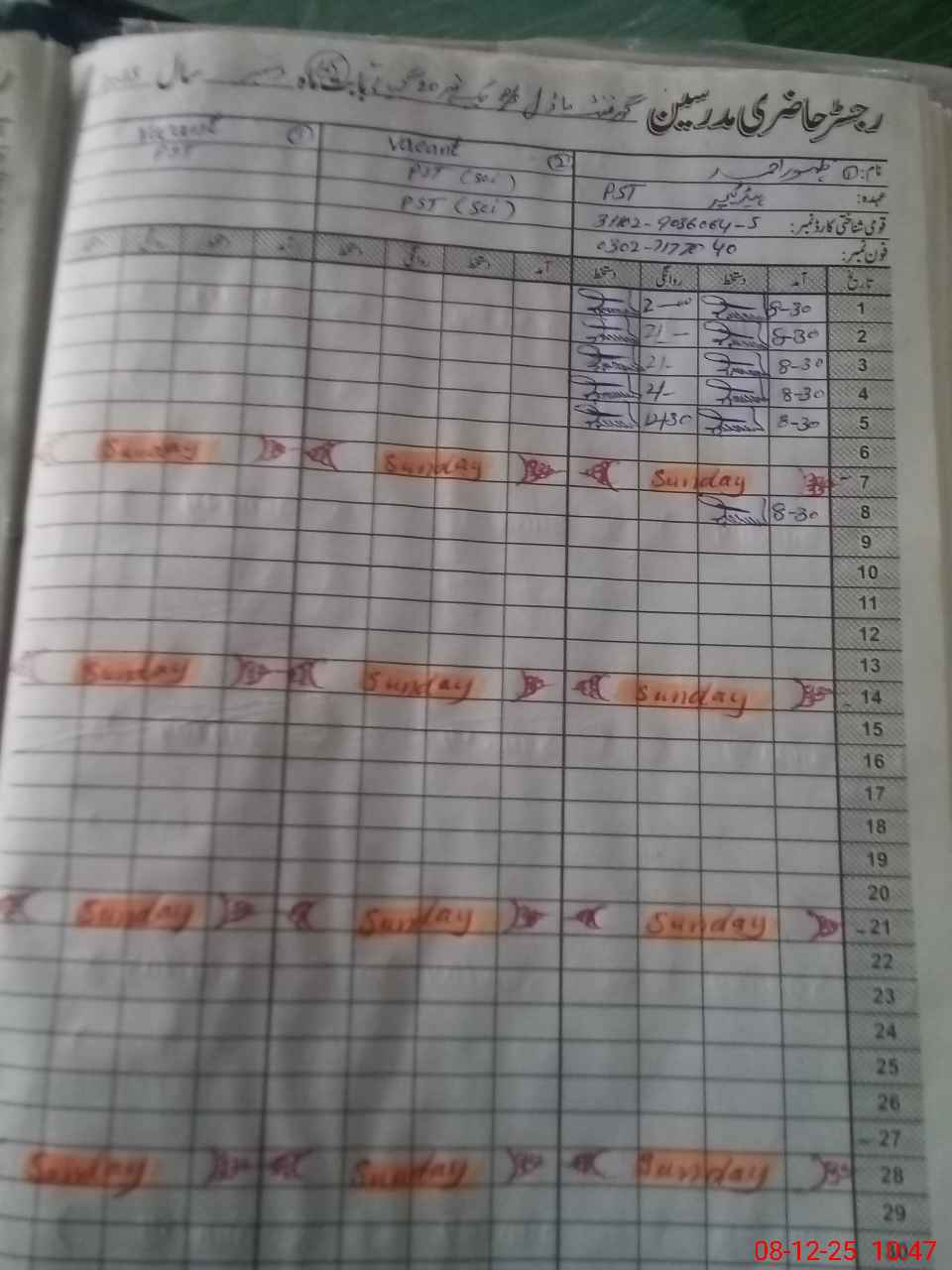 | Name: Za**** Ah**** Designation: (School Headmaster's/Headmistress's) PST Phone/Cell Number: 03**** |
