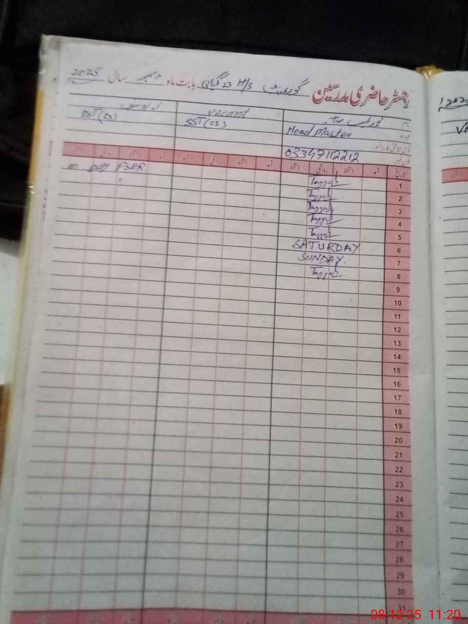 | Name: MU**** TA**** Designation: (School Headmaster's/Headmistress's) SST Phone/Cell Number: 03**** |