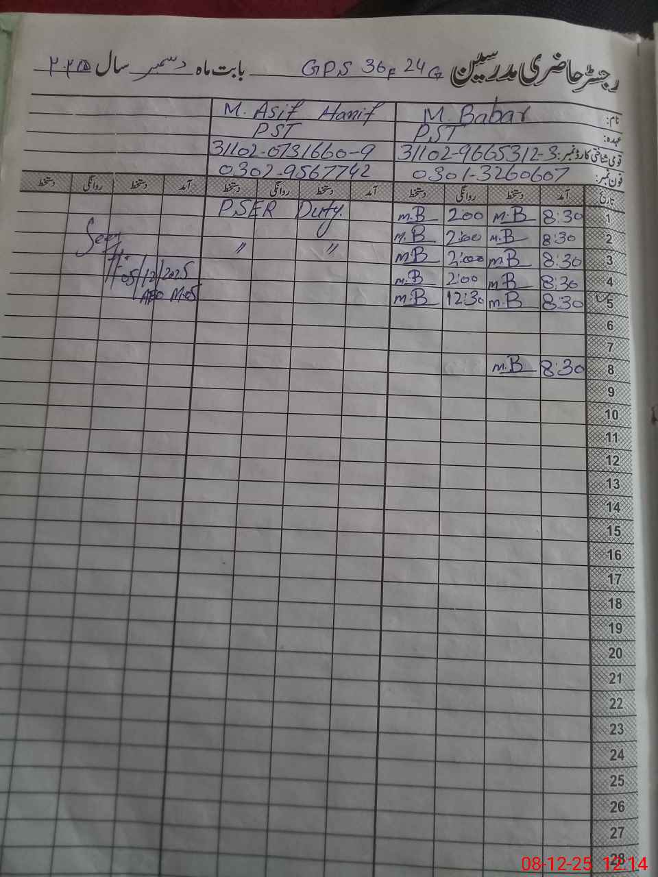 | Name: Mu**** Ba**** Designation: (School Headmaster's/Headmistress's) PST Phone/Cell Number: 03**** |