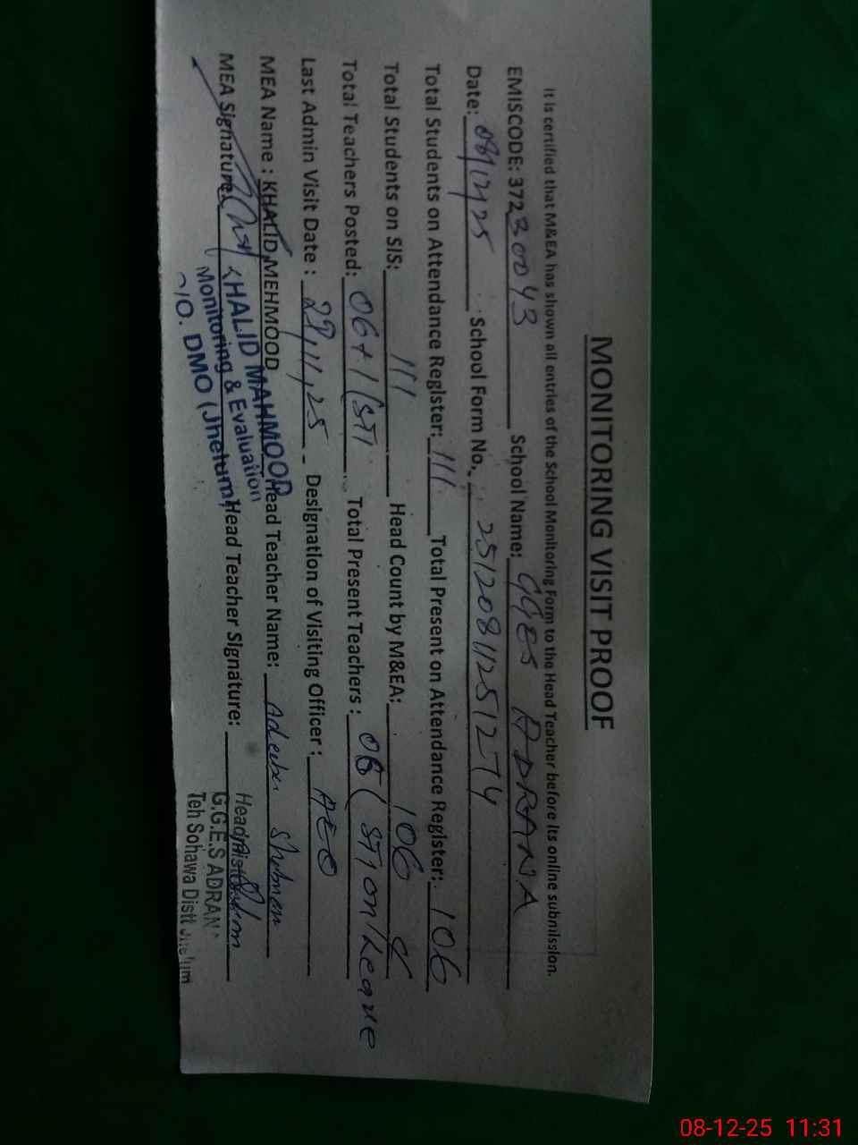 | EMIS Code: 37230043 | Name of School: GGES ADRANA | |||