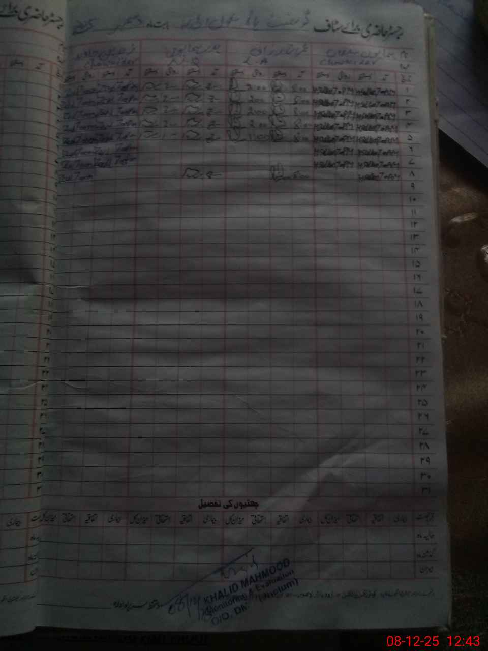 | CNIC | Full Name | Designation | R/C | Absence During Last Calender Month |